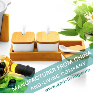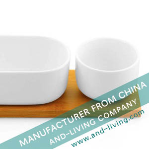 SET OF 2 PORCELAIN BOWL WITH BAMBOO TRAY