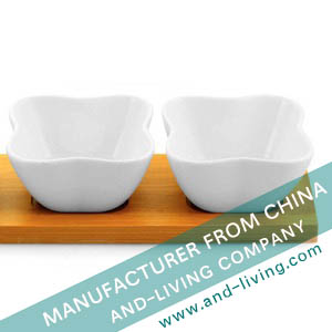 SET OF 3 PORCELAIN BOWL WITH BAMBOO TRAY