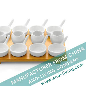 SET INCLUDES: 4 X PORCELAIN EGG CUPS, 8 X PORCELAIN DISHES, 1X BAMBOO TRAY
