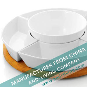 4 PORCELAIN BOWLS WITH BAMBOO TRAY
