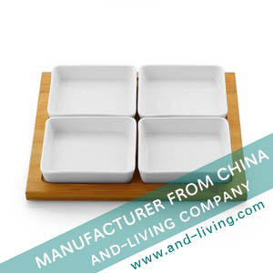 4-PC SERVING DISH W/ BAMBOO TRAY