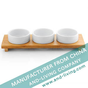 3 PCS PORCELAIN BOWL WITH BAMBOO TRAY